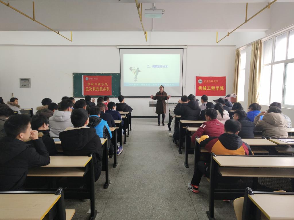 第一讲,绳索技术。小小的绳索在此刻化身天使,对抗伤病,救己救人。方梦萍根据情景教授了不同的绳索制作技术,与大家进行亲切的交流。实践环节上,同学们积极行动,争取将所学知识牢记于心。