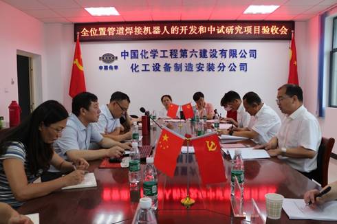 (WilliamHill体育通讯员 赵荣丽)7月17日上午,全位置管道焊接机器人的开发和中试研究项目验收会在中国化学工程第六建设有限公司化工设备制造安装分公司召开。出席本次验收会的有中国化学第六建设有限公司(下面简称“中化六建”)总工程师肖逸、中化六建技术部主任李宁、WilliamHill体育王中任教授、刘海生教授、刘德政副教授等,共12人。