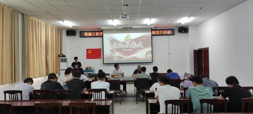 在此之后,钱文池同志播放了《习近平总书记“七一勋章”颁奖仪式讲话》以及部分“七一勋章”获得者的先进事迹的视频。在视频播放结束,郭政同志带领全体同志进行入党宣誓。最后钱文池同志总结道:“步入新时代,我们的生活与过去有了质的飞跃,但是安逸的环境往往会使我们自身懒惰,容易滋生腐败细菌。这时候我们需要回顾中国共产党的历史,回顾老一辈优秀党员的优秀事迹,学习他们的优秀品质,新时代仍要弘扬老一辈留下的革命精神,它不仅是高尚的品质,更是我们平时学习生活、为人处事的准则。从中国共产党成立之初到建立新中国这一阶段,中国共产党面临着巨大的挑战,是他们心中的强大精神支柱支撑着老一辈的共产党人在黑暗中前行,他们不怕吃苦,敢于同敌人斗争,是我们学习的榜样。”