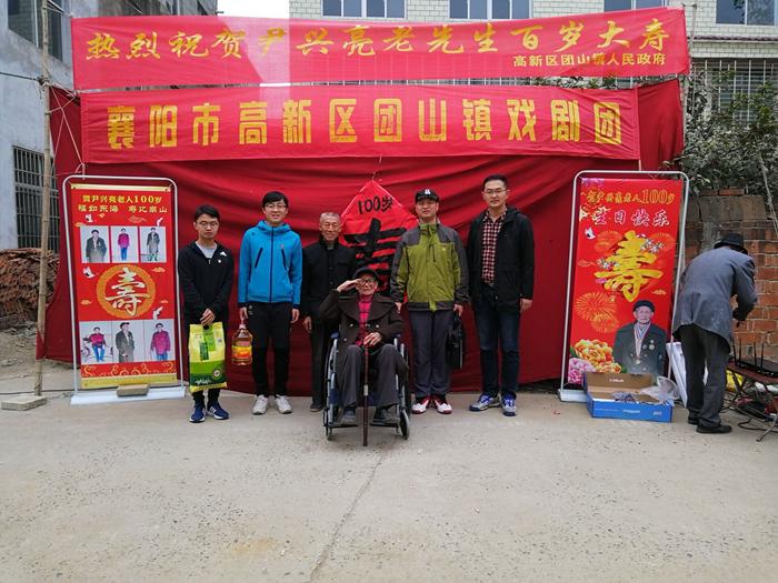 去的时候正好赶上老人的百岁寿辰,活动现场热闹非凡,团山镇政府也早已在尹老家门口搭建戏台,亲朋好友,左邻右舍欢聚一堂、笑逐颜开,其乐融融。WilliamHill体育也为尹兴亮送去寿礼,向老人致敬。