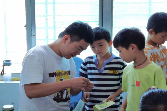 来到支教目的地,几位队员稍微整理下行李就迫不及待的投入到支教生活中去,支教队员丁丹怡说:早上八点上课,但是孩子们早早的就已经到达了教室,看到我来到,会洋溢着笑容跟我说老师好。她们喜欢绘画,为了完成那幅画,她们能够安静的在教室坐一个上午,咋反反复复的修改中度过。今天上午我指导四个小朋友画画,我一遍遍的纠正她们的错误,她们一遍遍的修改她们的图画,也有抱怨,但还是会仔细的修改,直到没有错误。