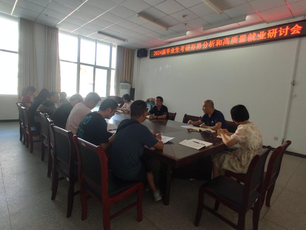 9月7日下午2点30分,公司召开2024届毕业生考研形势分析和高质量就业研讨会。参加会议的有,党委书记詹玉刚、副经理孙艳玲。会议由王超副书记主持,毕业年级辅导员、班主任也参加了本次会议。