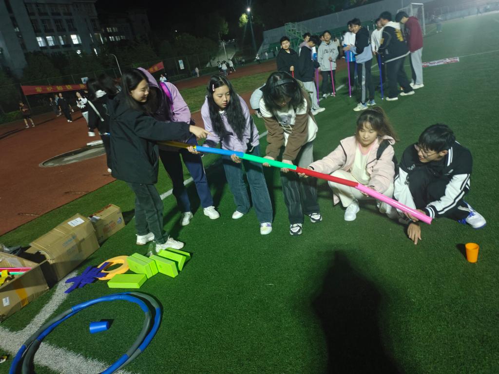 活动一共设置了五组小游戏,分别为“不倒森林”、“传呼啦圈”、“摸石过河”、“接力运球”、“竞速三子棋”。首先刘艺颖向同学们介绍了各游戏的规则并进行了示范,并将所有人分成两组进行赛前练习,练习过程中,同学们通过积极沟通交流很快适熟悉了游戏规则。随后两组进行了正式比赛角逐,秉着“友谊第一,比赛第二”的原则,同学们配合默契,展现了团结合作的良好精神风貌。最后,活动在欢声笑语中圆满结束。