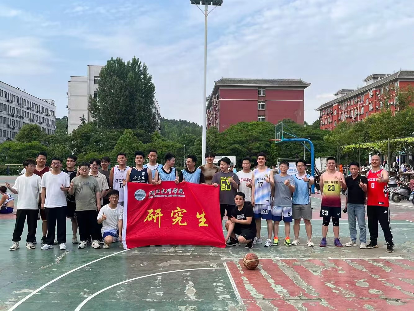图为机教师与毕业研究生篮球赛