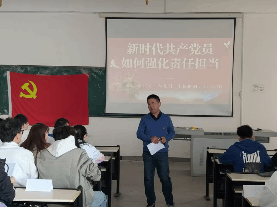 会议开始,常礼昌老师进行了自我介绍,和大家互动,接着,为大家讲解了责任的重要性和担当的必要性。常礼昌老师深入阐述了责任担当在个人发展、社会进步和国家建设中的重要意义。他强调,作为新时代的青年,党校学员们要明确自身责任,勇于担当起时代赋予的使命。从历史故事到当下实际,一个个生动案例让学员们深刻理解责任担当不是一句空话。学员们认真聆听,积极思考,展现出对这一主题的高度关注。此次党课为学员们注入了担当精神,激励他们在今后学习与生活中践行责任担当。