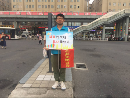 烈日炎炎,志愿者用手拂去汗珠,继续用微笑面对每一位乘客,早高峰和晚高峰车流湍急志愿者细心的将每一位站在站台下的乘客劝回站台。行李沉重,志愿者用并不结实的臂弯将行李搬上车。志愿者们细心的嘱咐乘客和开车司机们:“请慢一点,请有序乘车。”“这位师傅,这里是公交车站,您的车不能停在这里,谢谢配合”。同时,志愿者都持有“文明排队上车”的标识牌或引导旗在站台上维持乘客候车秩序,在公交车进站停靠后,引导乘客依次排队、前上后下。从志愿者面向排队上车的乘客都会投来满意的微笑。突降大雨,撩撩头发,让雨珠不模糊双眼,继续耐心的疏导站台交通。时常有乘客问:“你们这么做是多少钱一天啊?”他们笑着说:“我们是志愿者,无价的啊。”