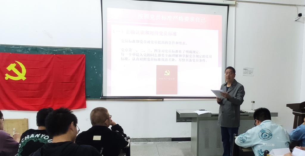 4月10日晚上6:30,公司党委书记詹玉刚在工科楼G-W618,为公司第四十九期党校学员上了一堂以“端正入党动机 争做合格党员”为题的党课。